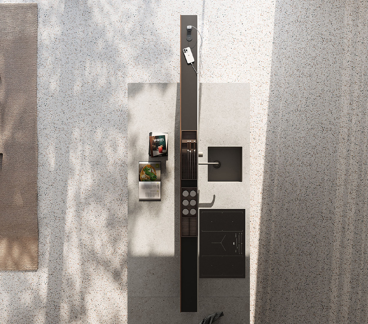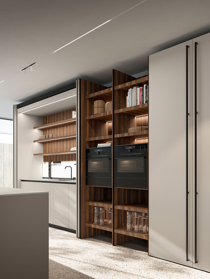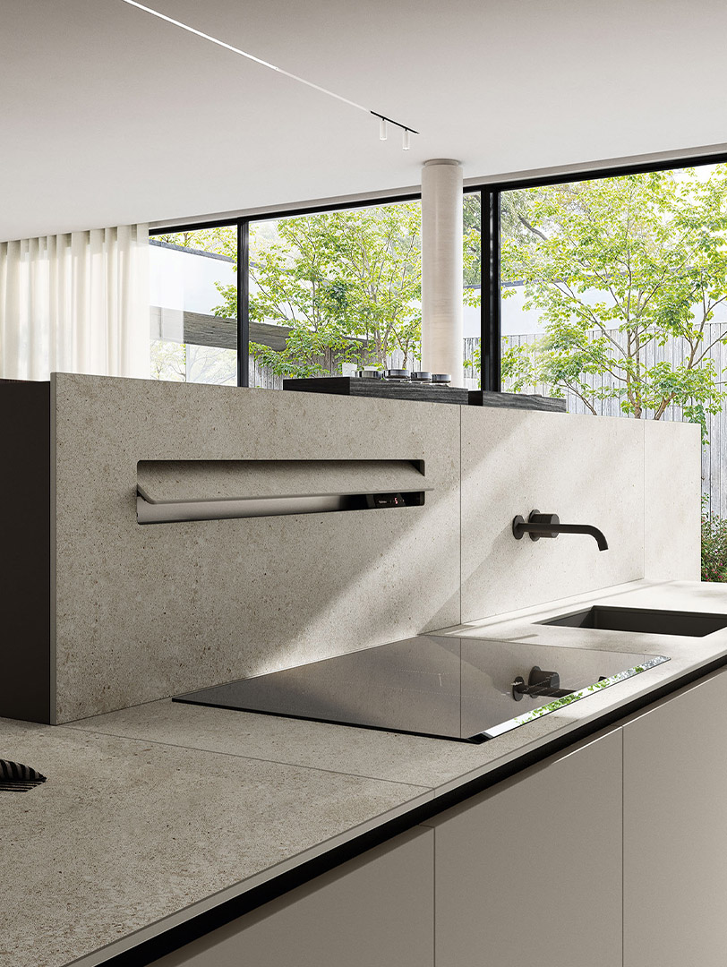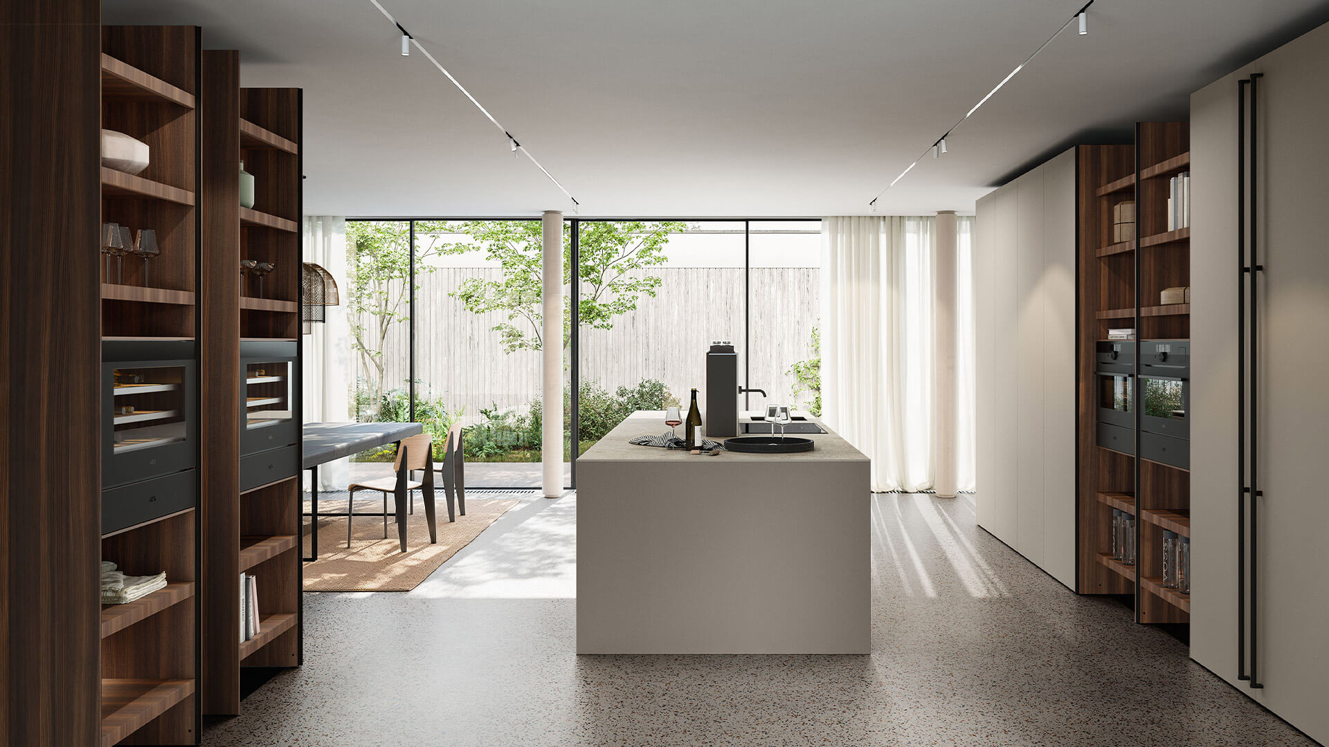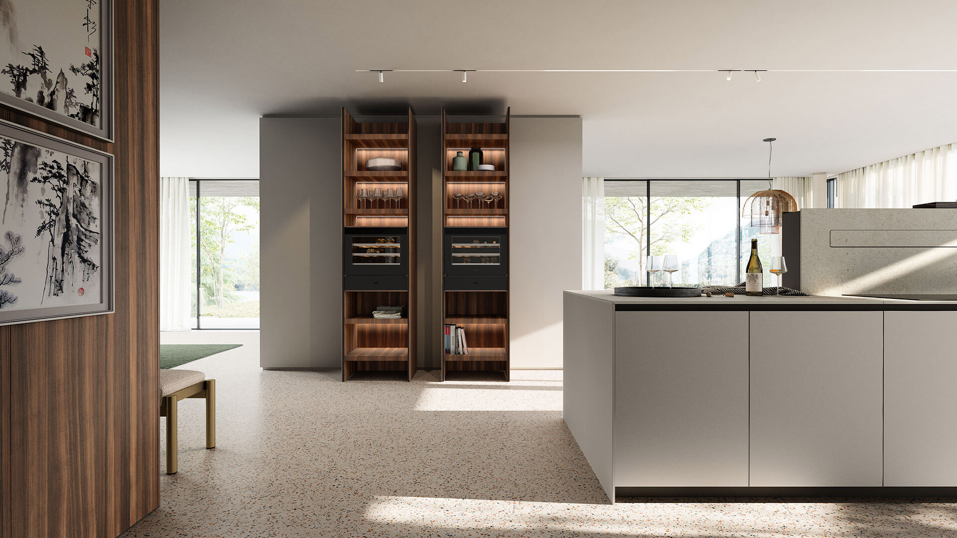 The perfect toast. In the heart of this abode, every detail beckons to celebrate life’s beauty. Expansive windows frame a captivating vista of the lake and its natural surroundings, while daylight bathes the space in a warm embrace. At the focal point stands the kitchen, transcending its utilitarian purpose to become a hub for gathering and sharing.The central island, brimming with vitality and practicality, entices guests to indulge in convivial pleasures. Adjacent columns, outfitted with household appliances, streamline organization, freeing the mind to fully immerse in the space. A feature wall serves as a picturesque divider, delineating the kitchen from the living area and unveiling an exquisite wine cellar. Here, amidst securely nestled bottles, time seems to slow, allowing for the savouring of each sip with the utmost attention and reverence.