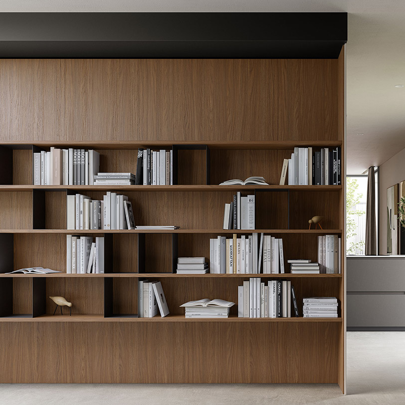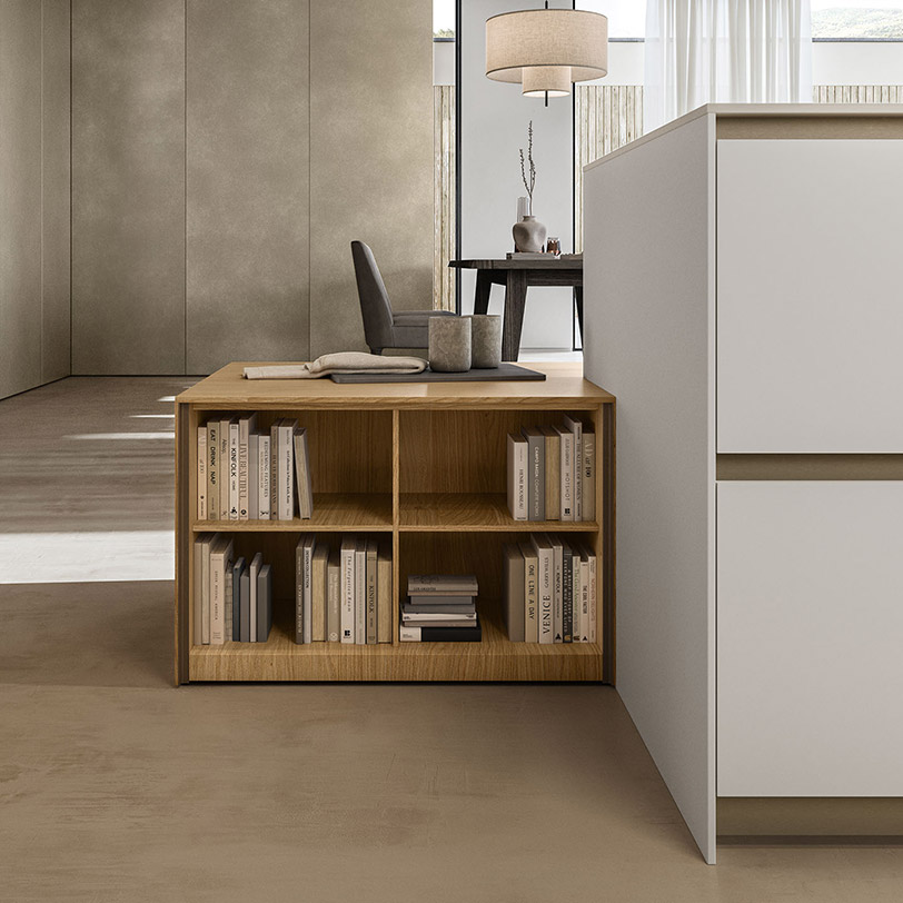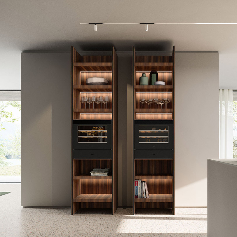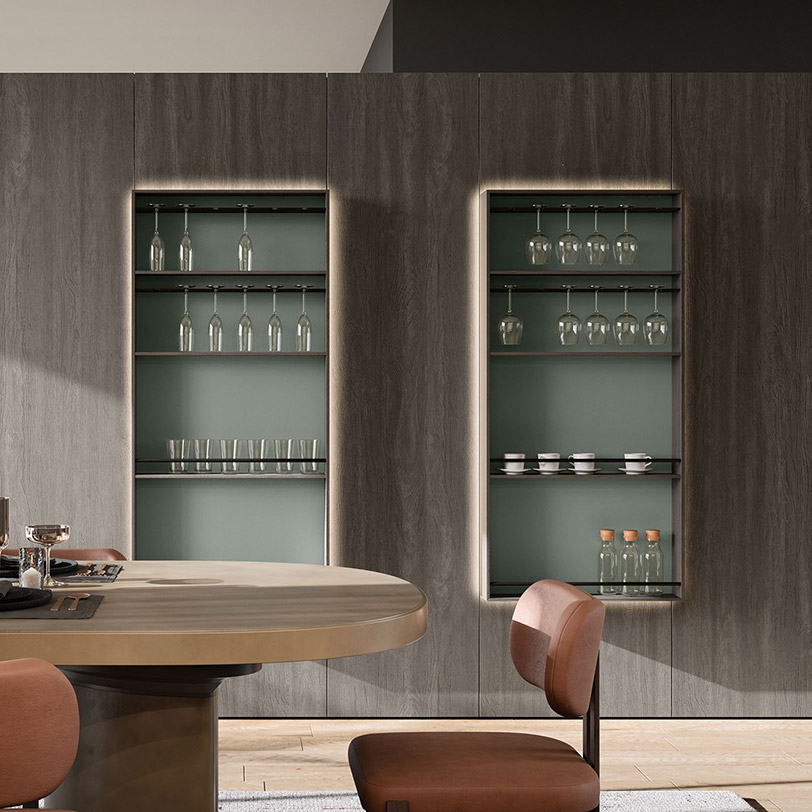 Thanks to its open floor structure, which envelops and accommodates the kitchen island, Backup enables the display of objects while serving as a support, thereby infusing personality into the room. Ideal for organization and character enhancement, this specialized Backup element seamlessly blends functionality with style.