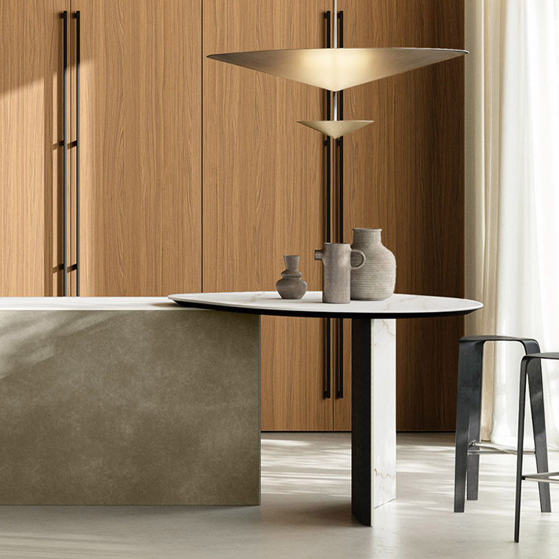 Bridge is a special element that rests on the island/peninsula countertop. Its lightweight and refined structure, reflecting the essence of Copatlife, is equipped with integrated dimmable lighting. Accessorized to hold spices and essential kitchen tools, it is a functional element with great impact without weighing down the surrounding space.